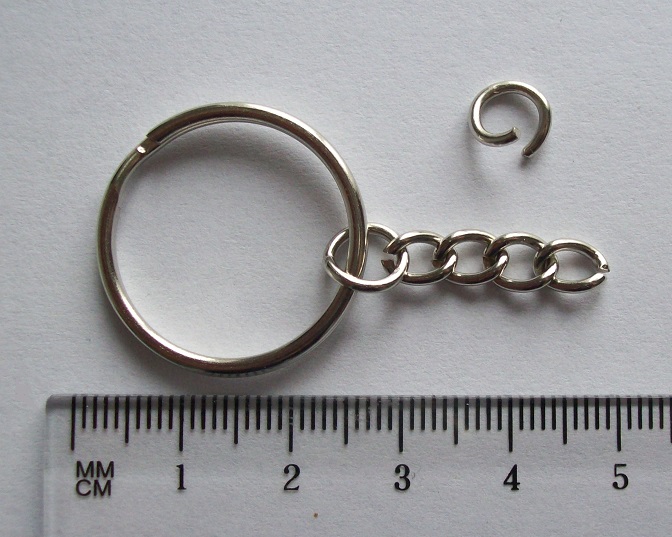 KOMPLET Kółko + wkręt:  kółko do breloka podwójne, gładkie z łańcuszkiem fi 25 mm plus wkręt